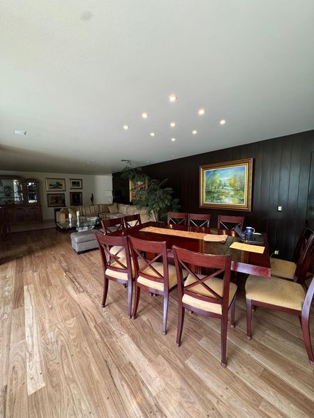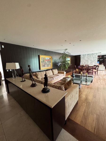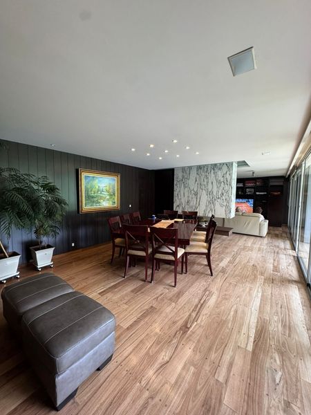 En un piso, espacios amplios y muy iluminada por grandes ventanales corredizos.