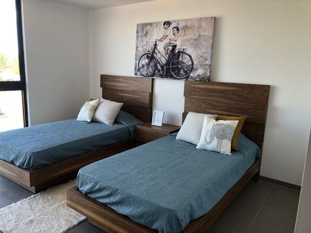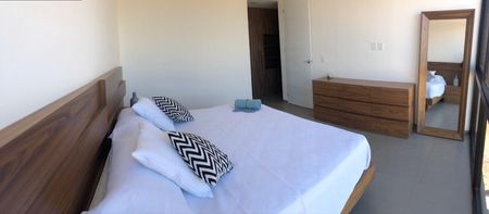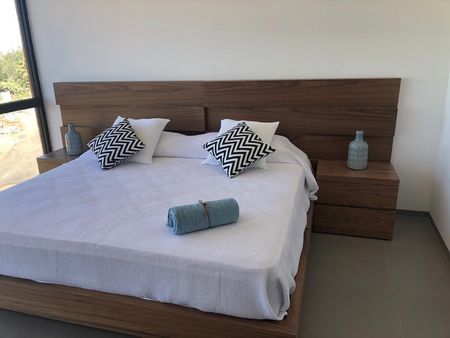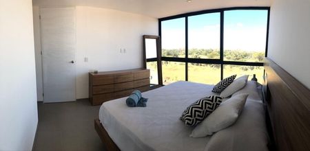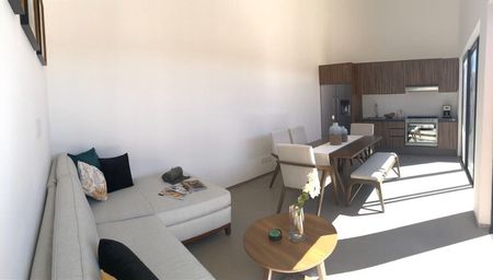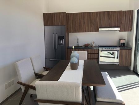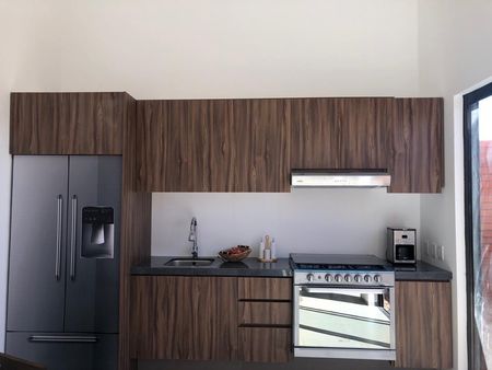 Equipadas con: Estufa, barras de granito, calentador de paso, tanque estacionario, bomba de presión sumergible. Acabados: Mármol, Granito, melamina, cristal templado, ventaneria en aluminio y Madera. Espacios a doble altura.