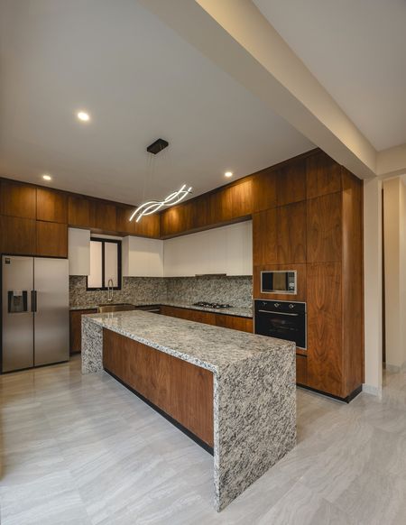 • Gabinetes de madera con gran capacidad de almacenamiento en cocina, sobre y bajo mesetas