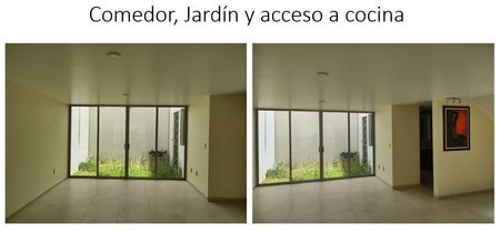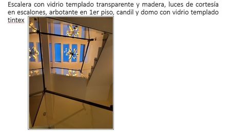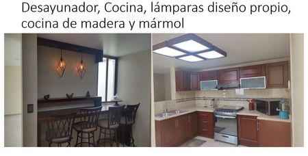 Sala, comedor, cocina con mármol, desayunador, jardín, estacionamiento para dos autos, 1/2 baño, chimenea, jardín, luces de camino y terraza.