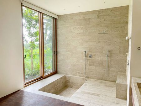 Interacción con la naturaleza: Los grandes ventanales en toda la casa permiten que la luz natural inunde los espacios y ofrecen vistas ininterrumpidas a la exuberante vegetación que rodea la propiedad.