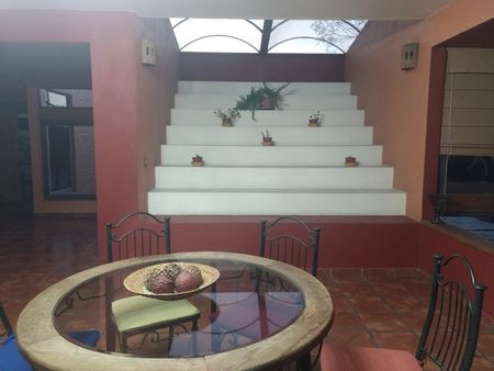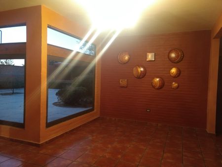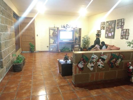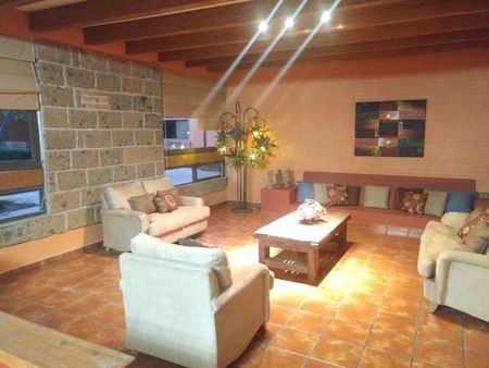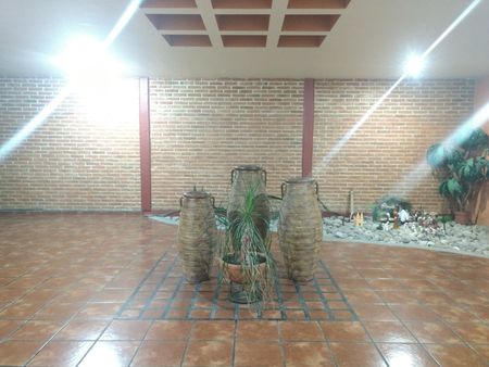 Hermosa residencia tipo mexicano, un nivel 1600m2, sistema de seguridad, salón de reuniones con cantina y baños de hombres y mujeres, cuarto de servicio completo, 2 salas de TV, terraza con jacuzzi, amplios jardines, cuarto de mascotas, ubicada frente al templo de Vista Alegre. Nunca antes rentada, en perfecto estado.