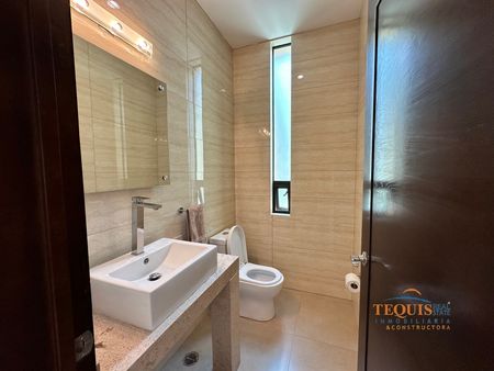 Imagina vivir en un hogar donde cada detalle ha sido cuidadosamente pensado. Con 4 amplios dormitorios, 3 baños completos y 2 medios baños, tienes todo el espacio que tu familia y tú necesitan. La cocina equipada, la espaciosa sala y comedor, y la salida directa al jardín son perfectas para tus reuniones o simplemente para relajarte.