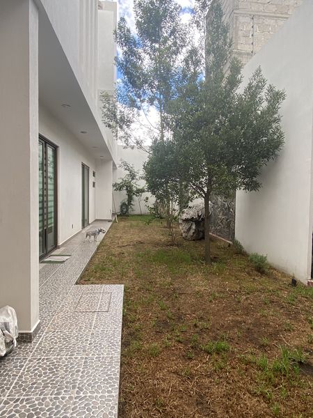 Jardín trasero con área de asador
