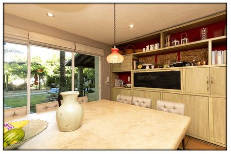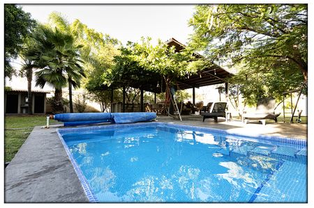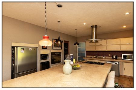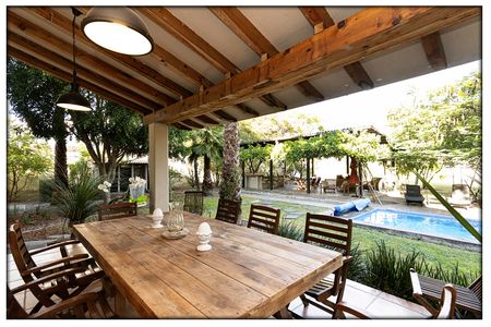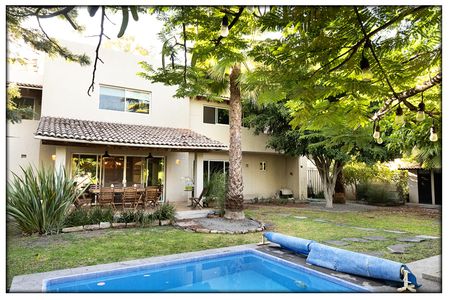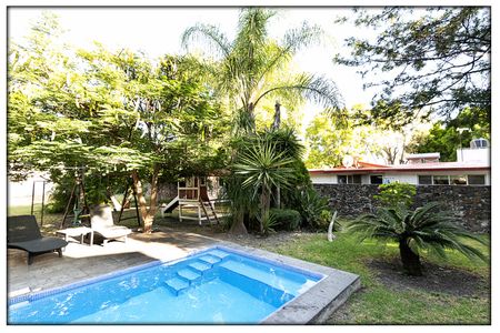 Fabulosa residencia estilo contemporáneo con excelentes acabados, amplios espacios en todas sus zonas, enmarcados por áreas verdes y árboles maduros. Incluye, también, un taller independiente de la casa, en la entrada, ideal para práctica de yoga, ballet, gimnasio, etc. Entrando, encontramos un recibidor de doble altura con muro llorón, sala comedor y un bar, además de una agradable sala de tv. Cocina integral con generosa mesa de trabajo, barra desayunadora, alacena y cuarto de servicio. En el área de jardín, cuenta con alberca, tres terrazas, dos cercanas a la casa y la otra acondicionada con asador y todo lo necesario para disfrutar con amigos y familiares de eventos sociales. Dos medios baños para dar servicio a esta zona. “Los precios están sujetos a cambios sin previo aviso, imágenes ilustrativas”.