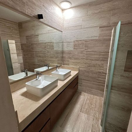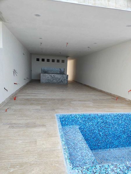 Acabados de lujo con piso de mármol travertino formato 30 cm por largo libre.