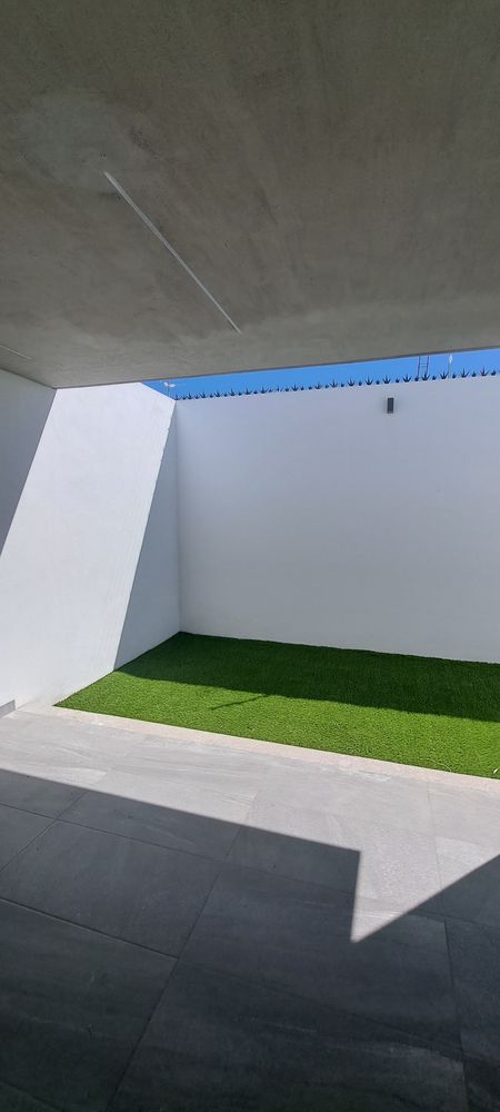 Al norte de Aguascalientes, por Av. Del Molino, de un nivel, con acabados residenciales, cochera para 2 autos con portón eléctrico, recibidor con muro llorón, sala a altura y media, cocina equipada, 2 recámaras, la principal con baño completo, 2 baños completos en total, sala de TV, minisplit en ambas habitaciones y en sala, patio de lavado, bodega pequeña, cisterna con bomba hidroneumática, tanque estacionario de gas, boiler, calentador solar.