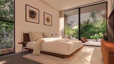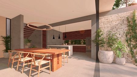 Este conjunto residencial consiste de 14 casas en lotes privados con un parque y café dentro de una zona sin descubrir en el corazón de Tulum. Ubicada en un rincón de la selva dentro del centro urbano, las casas cuentan con un diseño pensado en la eficiencia y el confort dentro de un espacio exclusivo donde la arquitectura contemporánea está rodeada por árboles. Vivir en una calle con un plan maestro asegura que los vecinos contarán con los mismos valores, buscando confort, tranquilidad y armonía con la naturaleza. Una Colaboración con artesanos locales y tecnología importada logra los estándares más altos de lujo, acorde con el estilo de vida mexicano en el Caribe.