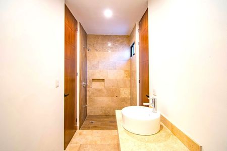 Recámara principal con closet vestidor y baño completo.