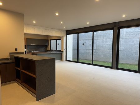 Planta baja: garage techado para 2 autos, baño de visitas, recámara con baño, bar, sala, comedor, cocina equipada, cuarto de servicio , centro de lavado, acceso de servicio.