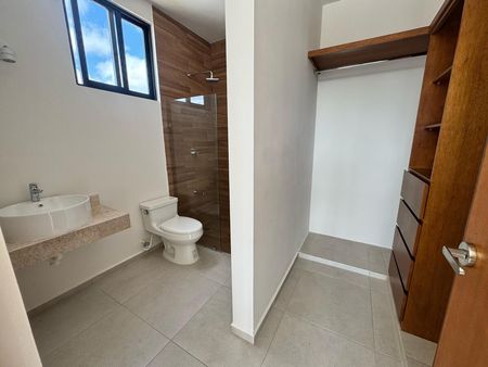 Recámara secundaria con closet vestidor y baño completo.