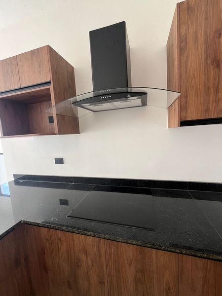 * Cocina integral con lamparas decorativas, parrilla y camapana.