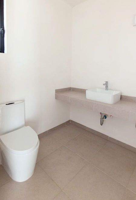 Imagina cenas acogedoras con tus seres queridos o tardes de películas relajantes en un ambiente lleno de calidez. Además, la planta baja cuenta con un amplio Jardin, area de servicio , a la entrada un práctico baño de visitas y una escalera elegantemente ubicada que te llevará al paraíso del descanso.