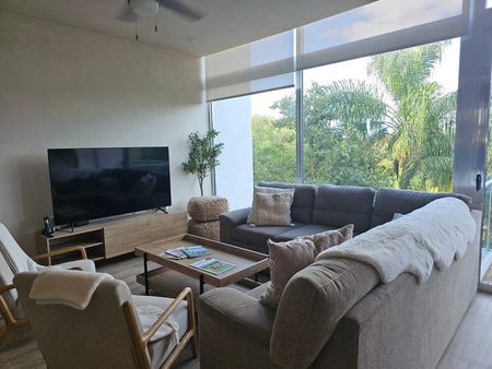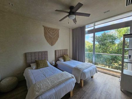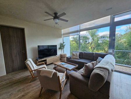 Departamento amueblado en segundo piso para una renta mínima de seis meses incluye el mantenimiento, agua, Telmex, casa club con alberca regaderas salón de Bentos cancha de pádel y estacionamiento para dos coches