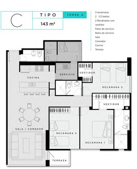 * Cuarto de servicio, ofreciendo funcionalidad adicional.