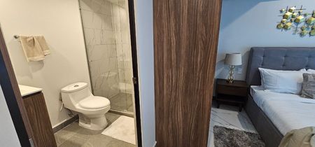 Se entrega equipado con refrigerador, horno de microondas, parrilla eléctrica y persianas