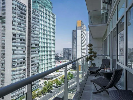 High Park Santa Fe, Magnífico Departamento con 2 recámaras, 2 baños completos, sala, comedor, cocina abierta y cuarto de lavado, bodega de 6m2, balcón de 10m2 y 2 estacionamientos independientes. Excelente vigilancia 24/7.