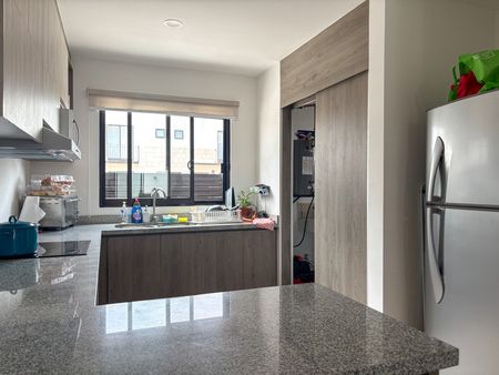 De dos recámaras y dos baños completos este departamento de cocina abierta y salida a un jardín con terraza lateral es amplio, funcional y lleno de luz natural. Incluye área de lavado y cajones de estacionamiento.