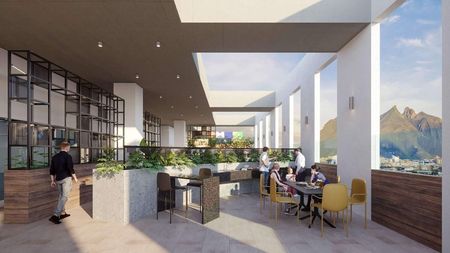 Disfruta nuestras áreas de recreación, desde espacios cerrados para el ejercicio y la concentración, hasta espacios abiertos para la relajación y contemplación. Todo con hermosas vistas hacia el sur de Monterrey.
