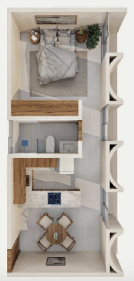 Se cuenta con 5 modelos de departamentos de 1 a 2 recámaras.
