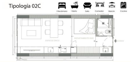 - Departamentos desde 33.23 m² hasta 49.55 m²