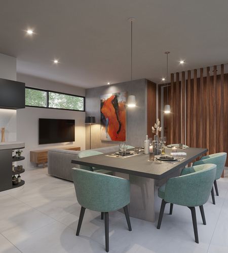 Los acabados y materiales de gran calidad, como madera de Tzalam, aluminio negro y Chukum, complementan a la perfección un estilo de lujo moderno de la región.