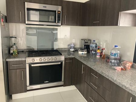 Muy buen departamento con electrodomésticos, sala comedor amueblado , tiene pisos de madera Alemana y buenos acabados. Muy iluminado y calientito. Con 2recamaras y pequeño estudio 2 baños completos, amplia sala comedor, cuarto de servicio con baño, lavanderia, 2 autos. Excelentes areas: comunes 2 albercas techada, gym, vapor y sauna, ludoteca, jardín, juegos infantiles, salon de adultos, salon de fiestas, cancha de tenis, de squash y padel.