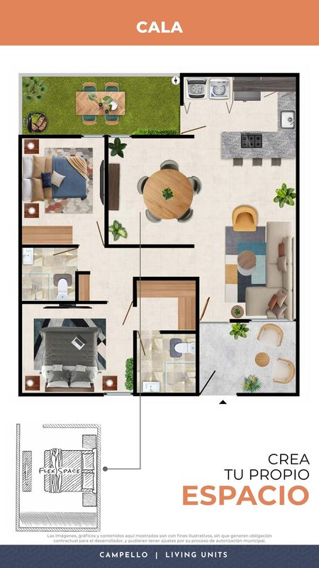 Modelo Cala PB 2 Recámaras