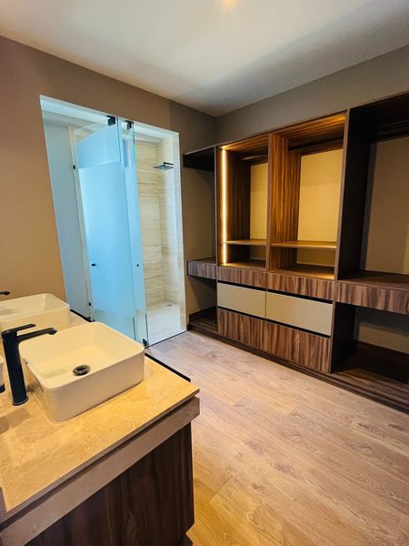 • 2 recámaras (la principal con baño completo y vestidor, recámara secundaria con clóset