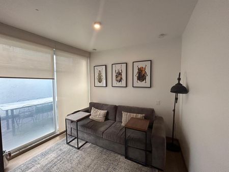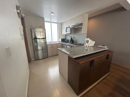 Cocina integral, sala, comedor y una amplia terraza, bodega y 2 lugares de estacionamiento cubiertos, ubicados uno frente a el otro sin que se estorben con ningún otro vecino. El edificio cuenta con seguridad y un Roof Garden.