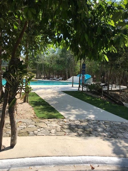 Excelente terreno en Fraccionamiento ALDEA KIIN, se ubica en calle cerrada que colinda en un lado con una zona verde y no tiene vecino, con pocas casas, sin ruido y no tiene vecino. Alejado de la carretera y Espacio para estacionar en la calle. Cerca de la alberca principal.