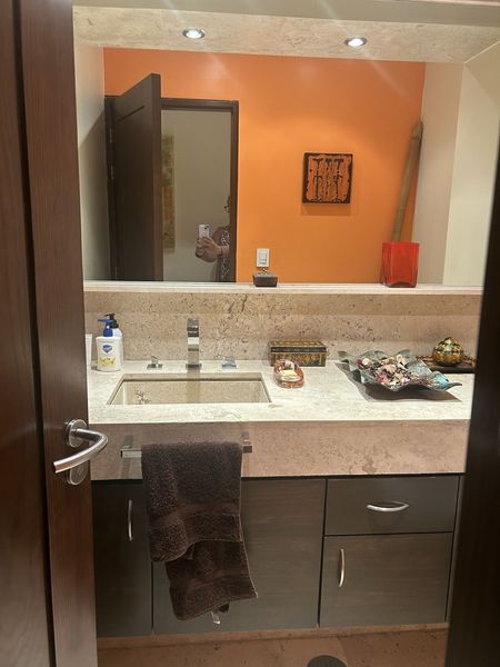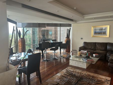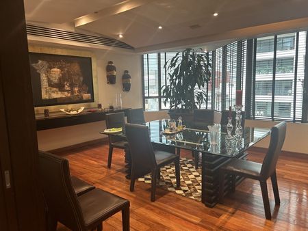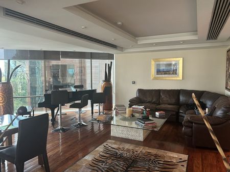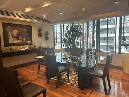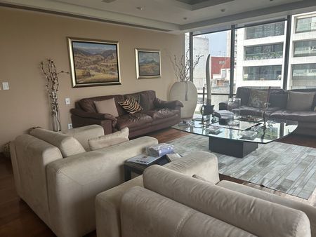 Cuenta con 400m2, 3 elevadores directo al departamento, un elevador es panoramico, 2 salas, gran comedor, cine 3 recámaras, cada una con baño y vestidor, la principal con vista al bosque Chapultepec, vestidor, tina con hidromasaje, cocina equipada con refrigerador Subzero, cava, cuarto de servicio con baño, 4 estacionamientos y bodega de 2×6.