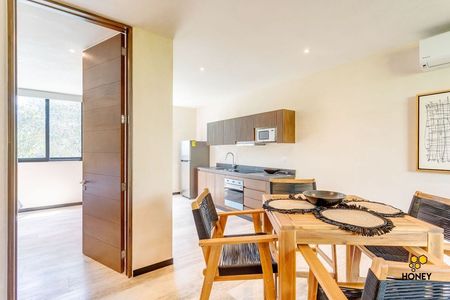 ¡Deje que este desarrollo único y exótico deleite sus sentidos en todo momento! - Dentro de la tranquila zona residencial llamada Aldea Zamá entre la playa y el pueblo - Ideal para una escapada romántica y tranquila en el paraíso mezclado con elementos de la naturaleza - Un lugar imborrable con una hermosa piscina, jacuzzi, solárium, área de bar al aire libre y lounge - Una gran terraza en la azotea con más lugares para comer/descansar al aire libre y un moderno gimnasio - Muebles cálidos y cómodos, Wi-Fi, una cocina totalmente equipada y un lugar de estacionamiento El espacio Este condominio de 678 pies cuadrados|63 metros cuadrados está ubicado dentro de la exclusiva zona de Aldea Zama, a medio camino entre la hermosa playa de Tulum y su pintoresco pueblo, y cuenta con: - Una sala de estar cálida y abierta con una decoración minimalista y naturalmente relajante y un cómodo sofá para relajarse en los momentos de inactividad en casa. - Una mesa de comedor con capacidad para 4 personas para una cena formal en casa con buenas charlas y risas a la hora de comer. ¡Esto también funciona como un espacio de trabajo apto para portátiles! (¡si debes!) - ¡La cocina abierta es poderosa! Con todo lo necesario para preparar comidas saludables en casa. ¡Está equipado con refrigerador/congelador, horno, estufa, microondas, cafetera y tostadora! - 1 dormitorio espacioso y relajante con aire acondicionado y un baño moderno con una amplia ducha independiente para acomodar a 4 personas con comodidad como tal: DORMITORIO: 1 cama King con fantástico espacio de guardarropas, silla de lectura y caja de seguridad ÁREA DE ESTAR: 1 sofá cama Queen extraíble - Hay 1 PLAZA DE APARCAMIENTO GRATUITA a tu disposición si llegas en coche. Por favor, pregunte en recepción a su llegada dónde estará su espacio. - Las estancias de larga duración son bienvenidas. Puede ser un gran lugar para el trabajador remoto. Wi-Fi gratuito y espacio de trabajo apto para portátiles en la mesa de comedor. Este condominio se encuentra dentro de un encantador complejo estilo comunidad, rodeado de naturaleza y ofrece excelentes comodidades como una hermosa y amplia piscina, jacuzzi y terraza para tomar el sol con sillas y camastros, y un bar con servicio de bebidas junto a la piscina. Hay un gimnasio moderno con muchos equipos y pesas libres y una gran terraza en la azotea con tumbonas adicionales, mesas para cenar o trabajar al aire libre, ¡y mucho espacio para observar las estrellas o ver una puesta de sol en la jungla!
