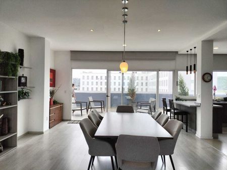 PentHouse disponible, único en su tipología; con terraza panorámica orientada al norte y vistas también al sur desde recámaras y sala. En excelentes condiciones, recámara principal con vestidor y baño, recámaras secundaria con closet y baño completo, recámara con closet y baño compartido con el área social, cuarto de servicio, cuarto de lavado, bodega y cajones de estacionamiento.
