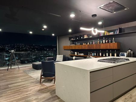 El departamento viene completamente amueblado y decorado, además de estar totalmente equipado con todo lo necesario. La cocina está equipada con acabados de lujo, y las cortinas son eléctricas para mayor comodidad. También cuenta con sistema de calefacción y aire acondicionado para adaptarse a todas las estaciones. (Precio con mobiliario a negociar)