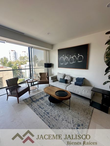 Amenidades: Front desk. Lobby & lounge. Terraza. Alberca. Gimnasio. Conectividad WIFI. Pet friendly. Ciclopuerto. Elevadores. Accesibilidad. Facilidad para mudanzas. Clóset para paquetería y mensajería. Estacionamiento para visitas.