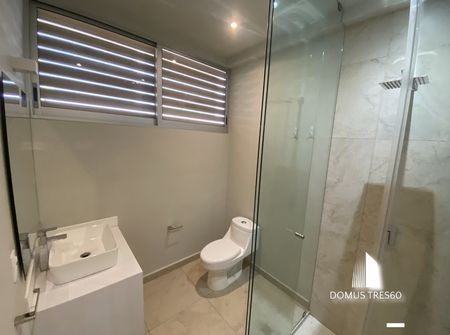 *2 baños completos con cancelería en vidrio templado y ventilación natural