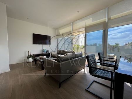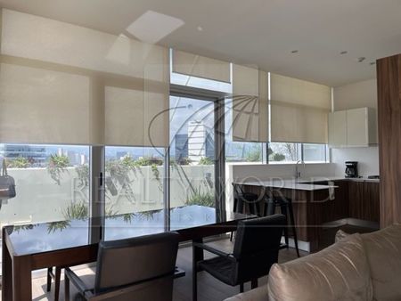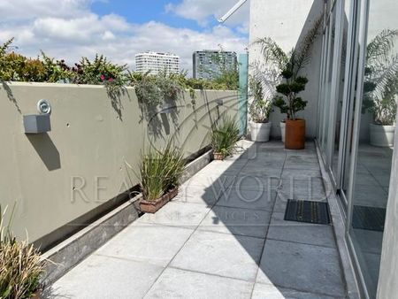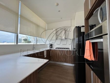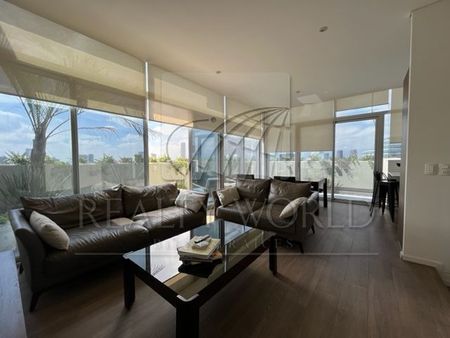 Está distribuido en 2 niveles y cuenta a nivel de acceso con sala comedor, cocina, amplia terraza en forma de L que da iluminación y vista al departamento. Bajando un nivel se encuentran 3 recámaras, la principal con baño y vestidor. Las otras 2 recámaras comparten baño. Cuenta además con área de lavandería y bodega.