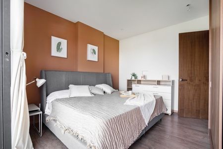 Sala,comedor,cocina abierta, 2 baños y medio, cuarto de lavado, 2 recamaras, sala de TV (opción a tercera recamara), bodega, roof garden privado.
