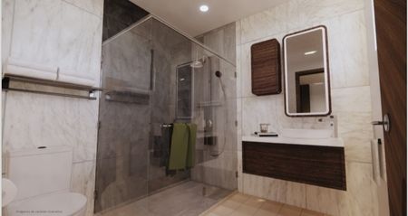 Todos cuentan con 2 recámaras con baño completo y vestidor y 1 recámara con baño completo y closet, sala comedor, cocina, cuarto de lavado, cuarto de servicio, terraza, Roof Top, 2 cajones de estacionamiento, 1 bodega.