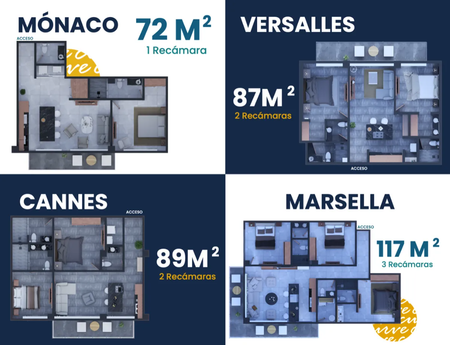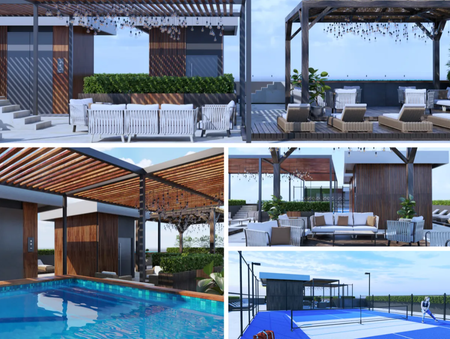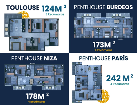 Este desarrollo cuenta con 4 torres dentro del condominio y 8 tipos de departamentos.
