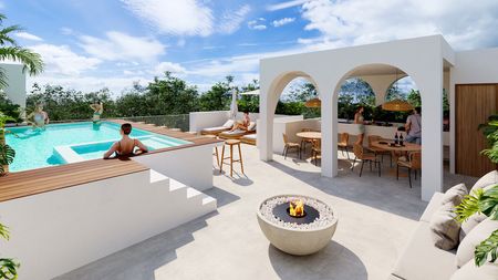 Con espacios de 1 y 2 recámaras distribuidas en 4 torres y 5 niveles + rooftop