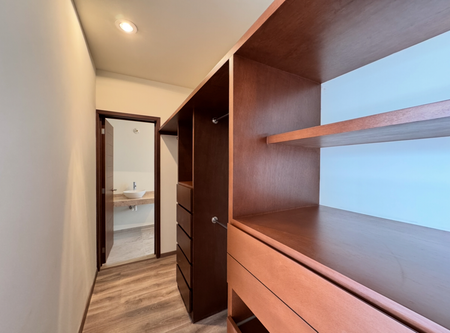 Recamara principal con vestidor y baño completo, Recamara secundaria con closet con cajonera, belicera y tubo de colgar, Baño completo, Sala-Comedor, Cocina incluye: Cocina integral,