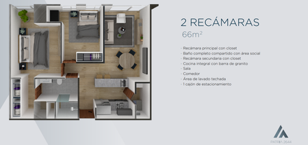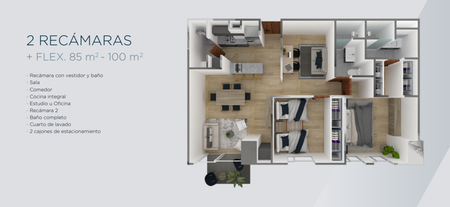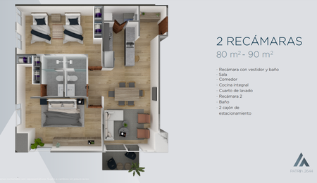 TORRE PATRIA 2644 cuenta con 4 modelos de departamentos entre 47 y 150m2 de 1, 2 y 3 recamaras