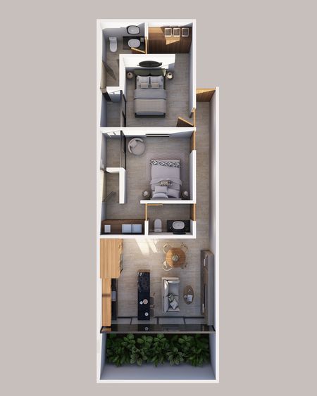 Cada departamento cuenta con espacios pensados para vivir cómodamente.
