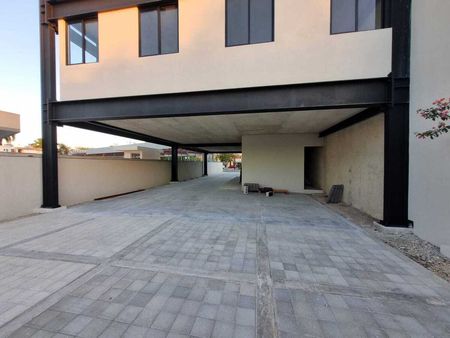 - Piso de concreto en estacionamiento techado y adoquín premium sellado en áreas Exteriores.