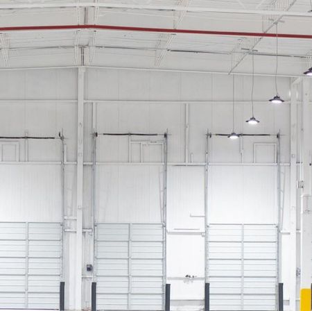 Andenes: 3 andenes deprimidos para tráiler de 53 pies con nivelador mecánico, (30,000 lbs.), bumpers y puertas de andén.