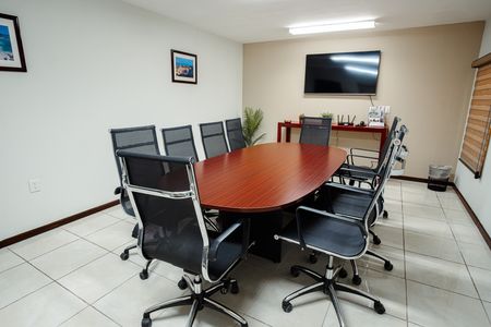 Contamos con una sala de juntas con Smart TV de 52’’, con capacidad para 8 personas, completamente equipadas y amuebladas las cuales puede rentar por hora a un precio especial al contratar su plan de oficina: $125.00 más IVA (Ciento veinticinco pesos 00/100 moneda nacional más Impuesto al Valor Agregado) por hora , Precio de renta libre sin contrato $270.00 más IVA (Doscientos setenta pesos 00/100 moneda nacional más Impuesto al Valor Agregado) por hora. Se asignan salas de forma alternada según su disponibilidad. Incluye todos los servicios.