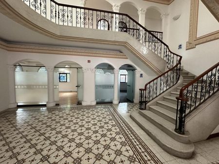 Actualmente está adaptada para oficinas con, 18 privados con aire acondicionado y algunos cuentan con baño propio.