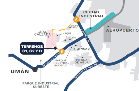 En Venta Terreno con uso de suelo industrial y de servicios ubicado en carretera Mérida- Umán a tan solo 1.5 km del CEDIS AMAZON.
